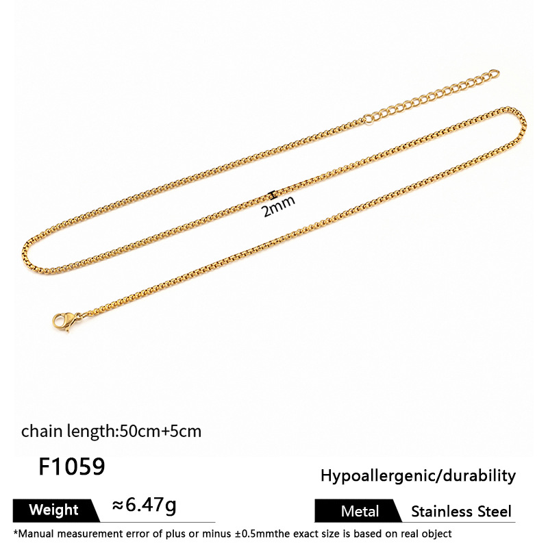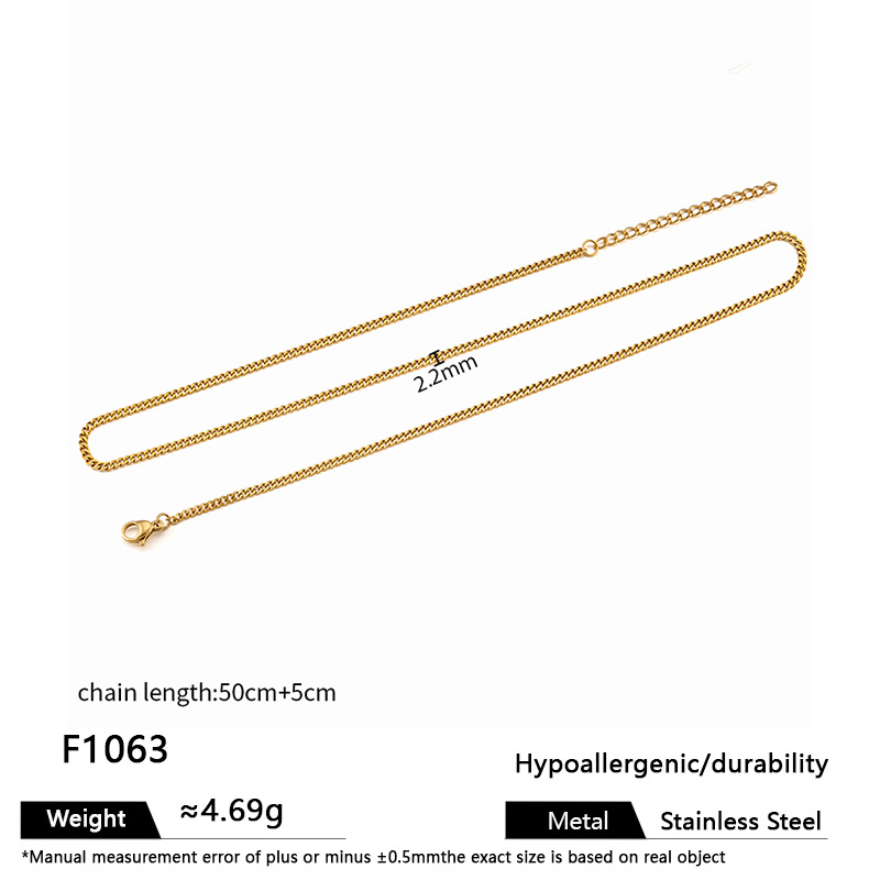 Color: F1063-gold double-sided polished necklace-width 2.2mm (vacuum color-preserving electroplating 18k gold)
