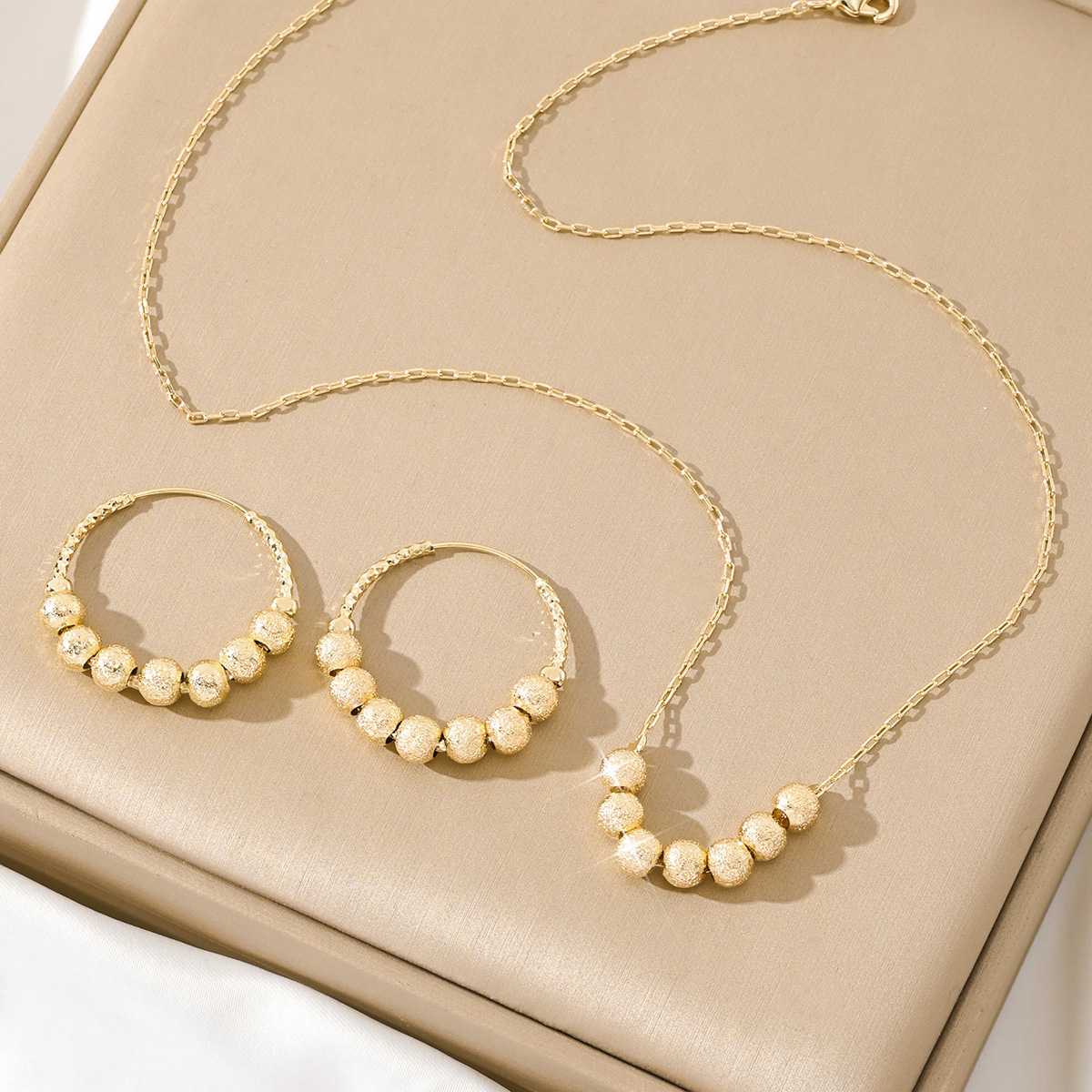 [Source Factory] European and American Cross-Border Popular Export Jewelry Fashionable Frosted Sand Gold Beaded Women's Necklaces and Earrings