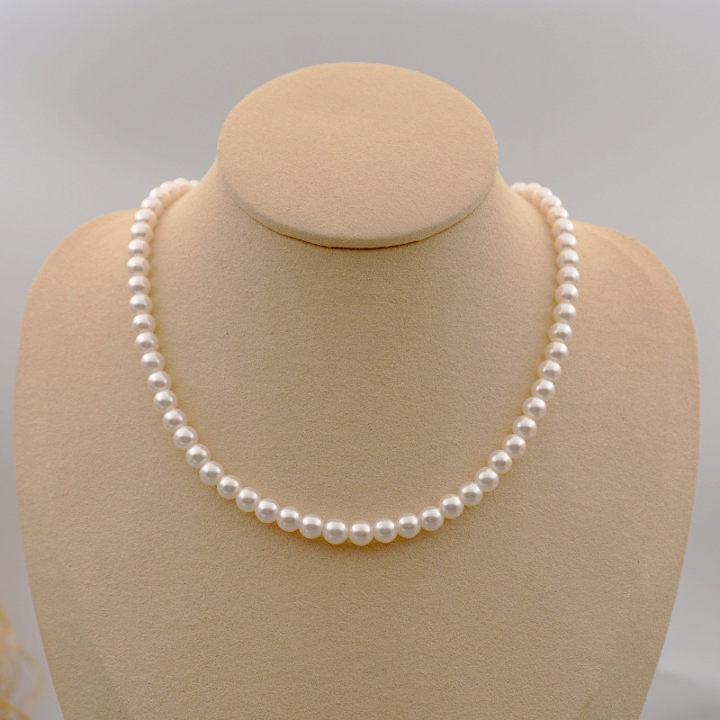 Cross-Border Popular Jewelry Simple Pearl Necklace Mother Chain Round Imitation Pearl Beads Millet Beads Accessories Women Summer