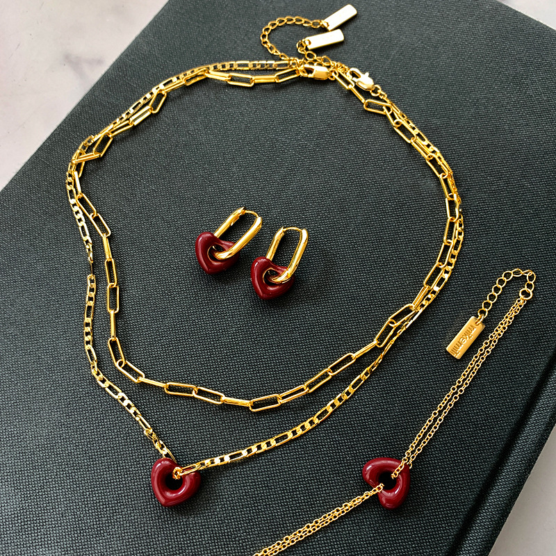 Cherry Red French Retro Enamel Love Heart Necklace Women's Light Luxury High-end Hong Kong Style Sweater Necklace