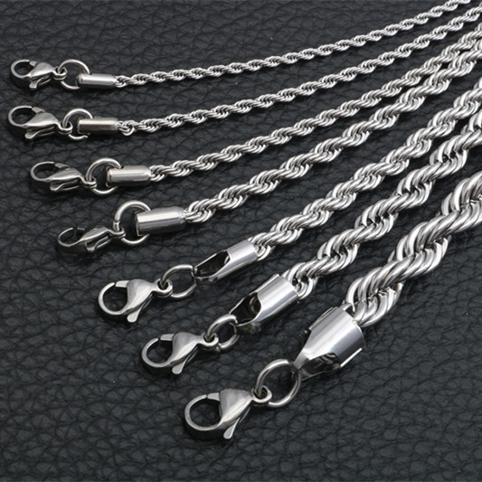 Stainless Steel Twist Chain Titanium Steel Men's and Women's Necklace Pendant Tagging Brand Military Matching Chain Bare Chain Single Chain Clavicle Chain Wool Chain