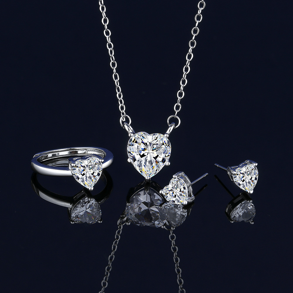 Temu hot popular fashion jewelry heart-shaped zircon love Korean style love crystal stud earrings necklace ring wholesale