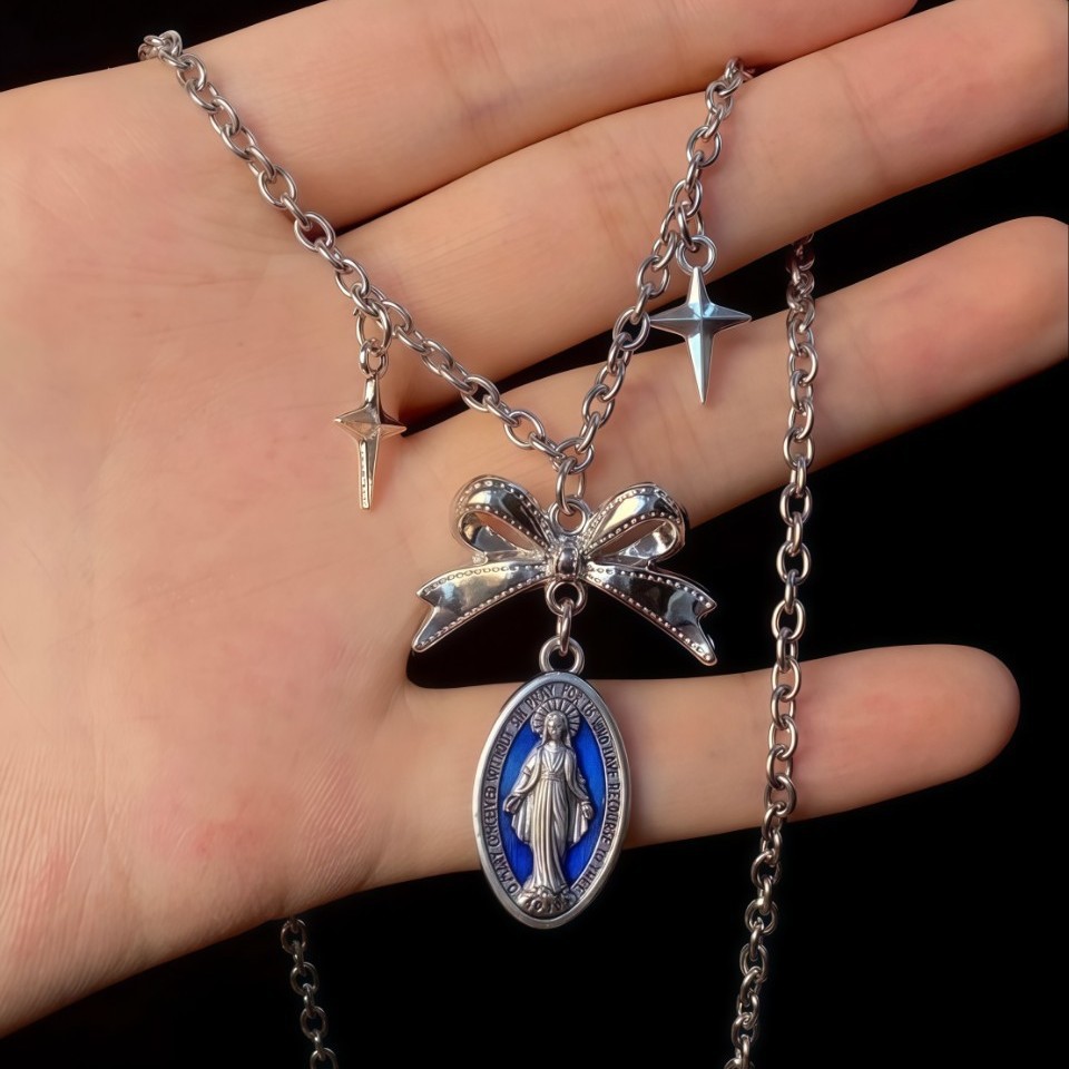 Korean Style Ins Style Bow Oval Brand Star Necklace Niche Design Retro All-match Y2K Distinctive Clavicle Chain