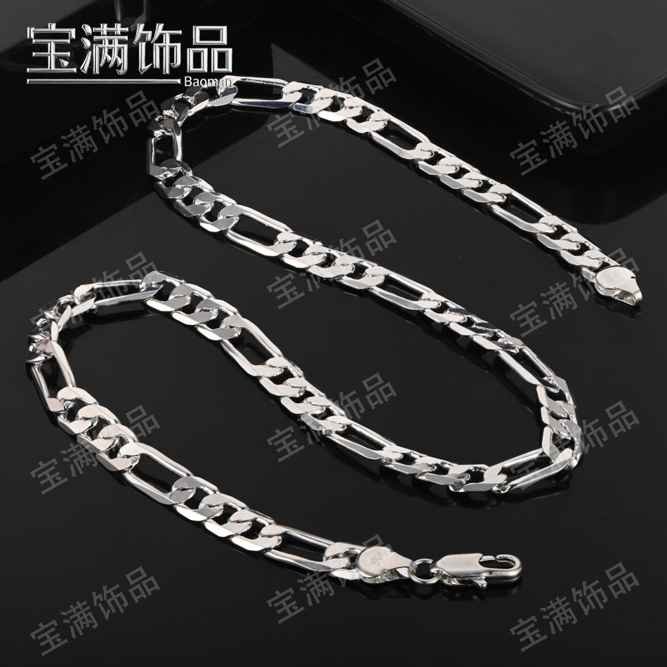 Cross-Border Xiyin Aliexpress Popular Figaro Necklace Bracelet Plated with 925 Silver 8mm Side Chain Jewelry Silver Jewelry Wholesale
