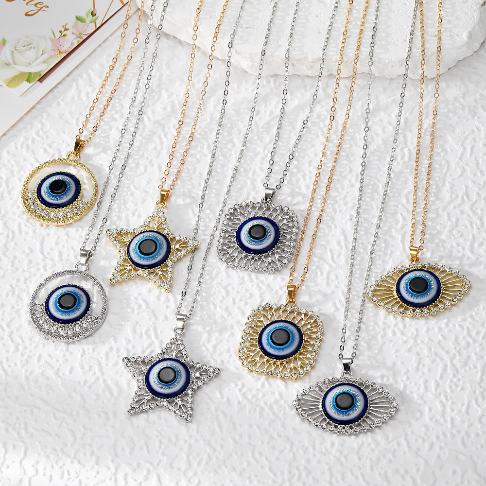 European and American Turkish Blue Eyes Alloy Star Devil's Eye Necklace Rhinestone Pendant Necklace Sweater Chain Clavicle Chain