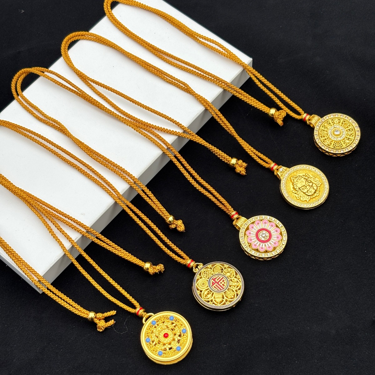 Gold Store Same Style Sand Gold Dot Diamond Ruyi Sunflower Necklace with Rotating Compass Pendant Sweater Chain Gift for Girlfriend