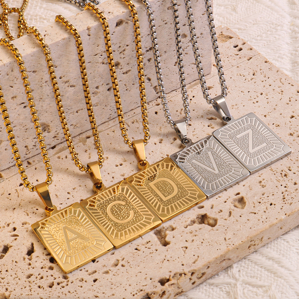 Stainless Steel Joker 26 Letter Pendant Necklace Long Box Chain 18k Gold Color-free Fashion Titanium Steel Woolen Chain