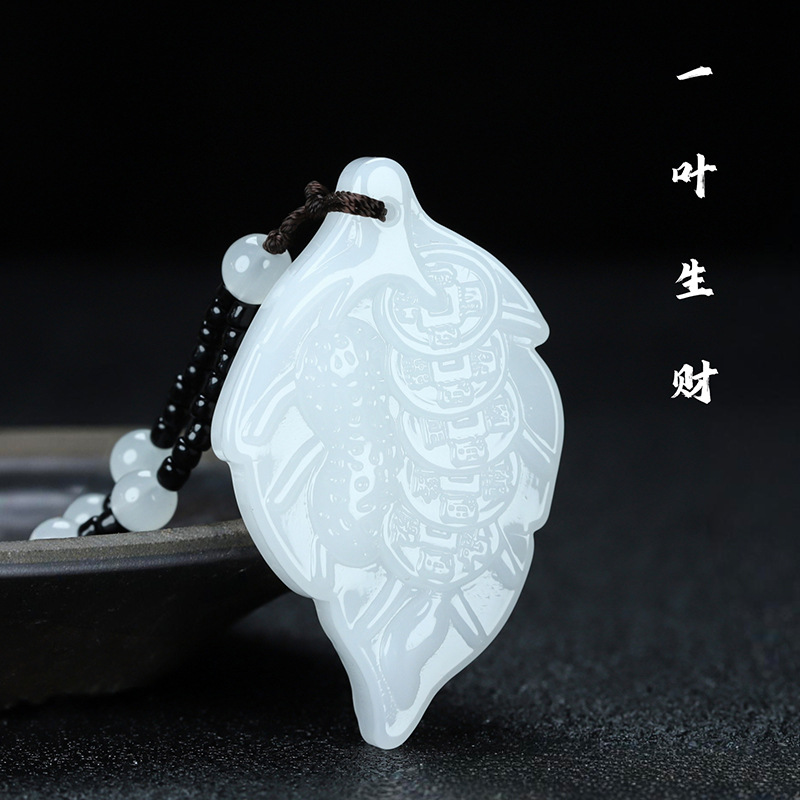 Imitation Jade Leaf Fortune Sweater Chain Long Versatile Safety Buckle Pendant Clothing Accessory Tiktok Cross-Border Necklace Jewelry