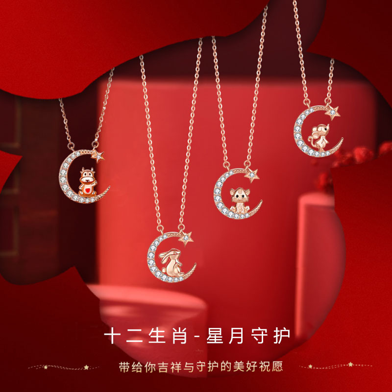 Twelve Zodiac Necklace Women's 2024 New Birthday Year Star Moon Pendant Collarbone Chain Light Luxury Niche All-match Personalized Trendy
