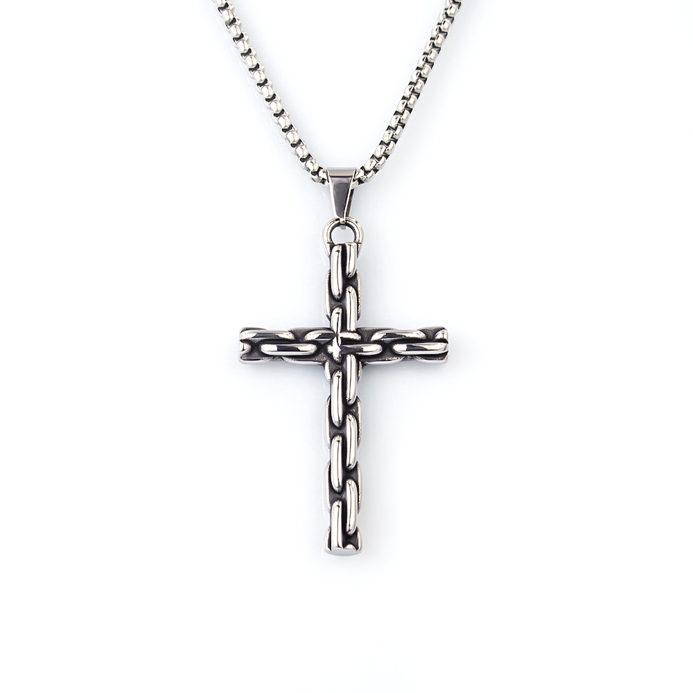 Stainless Steel Retro Punk Men's Cross Pendant Cross-Border Supply Titanium Steel Necklace Men's Jewelry Wholesale