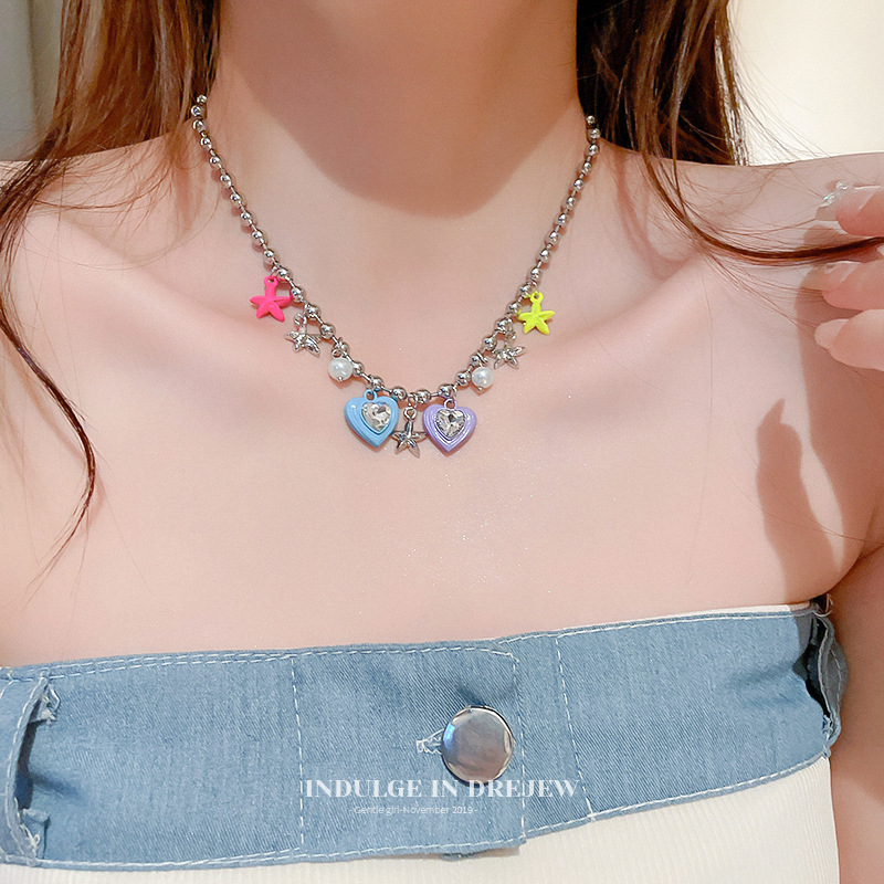 Dopamine Color Love Necklace Women's Advanced Design Sense Niche Clavicle Chain 2023 New Hot Style Necklace Chain