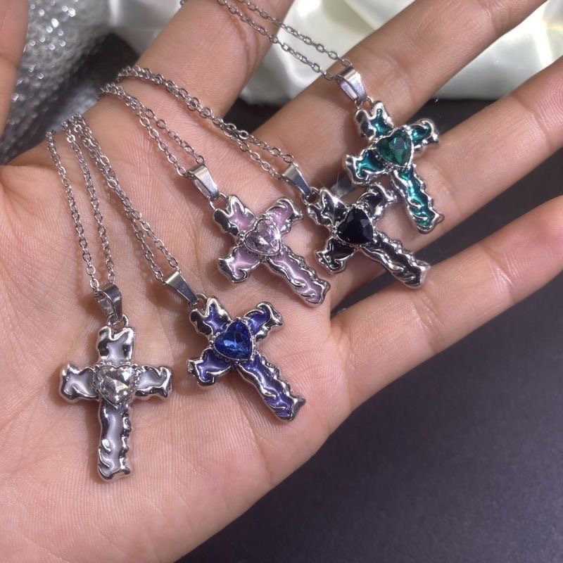 Trendy Popular European and American Style Personalized Diamond-Studded Oil Drop Cross Necklace Hip-Hop Niche Versatile Pendant Jewelry Trend