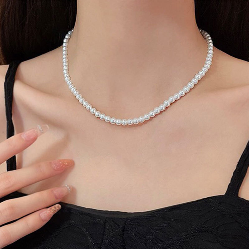 Cross-border hot 5mm imitation pearl necklace women Europe and the United States simple Joker beaded necklace clavicle chain jewelry wholesale