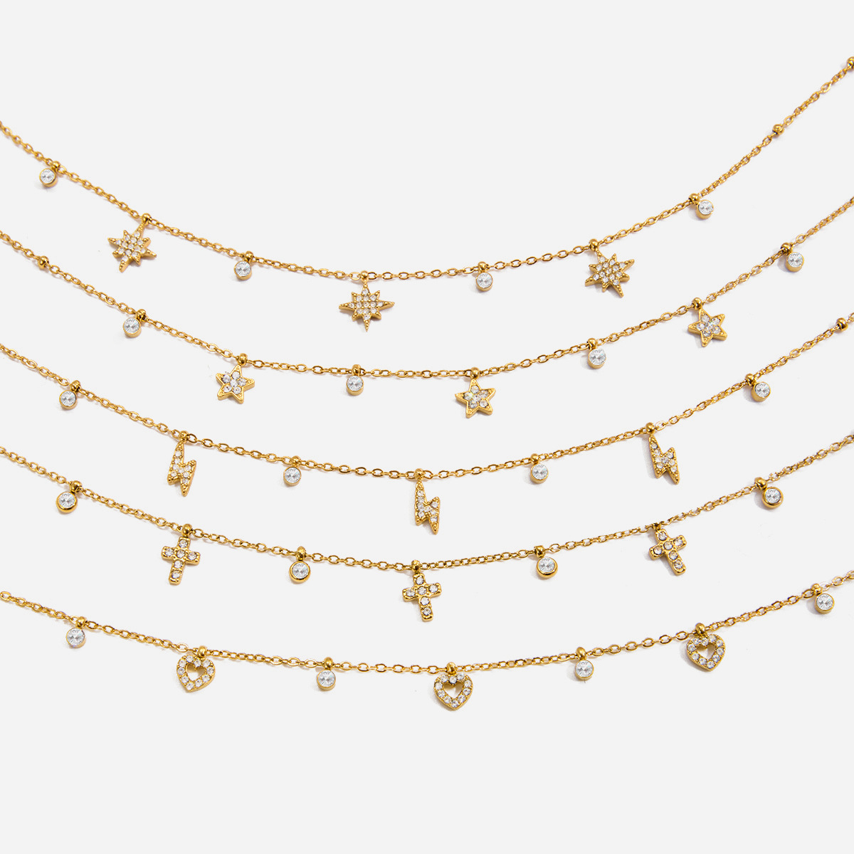 Titanium steel multi-pendant necklace stainless steel four-leaf clover love star moon devil's eye necklace with diamond