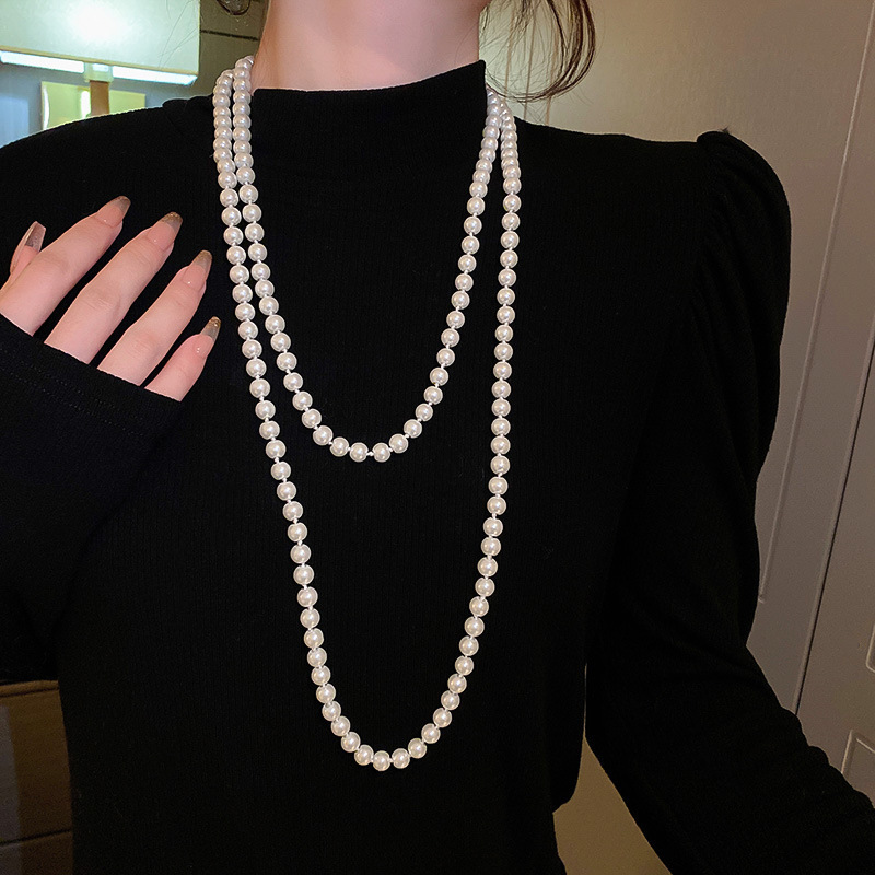 French High-end Retro Long Pearl Necklace Women's Simple Distinctive Woolen Chain Dongdaemun Light Luxury Niche Necklace