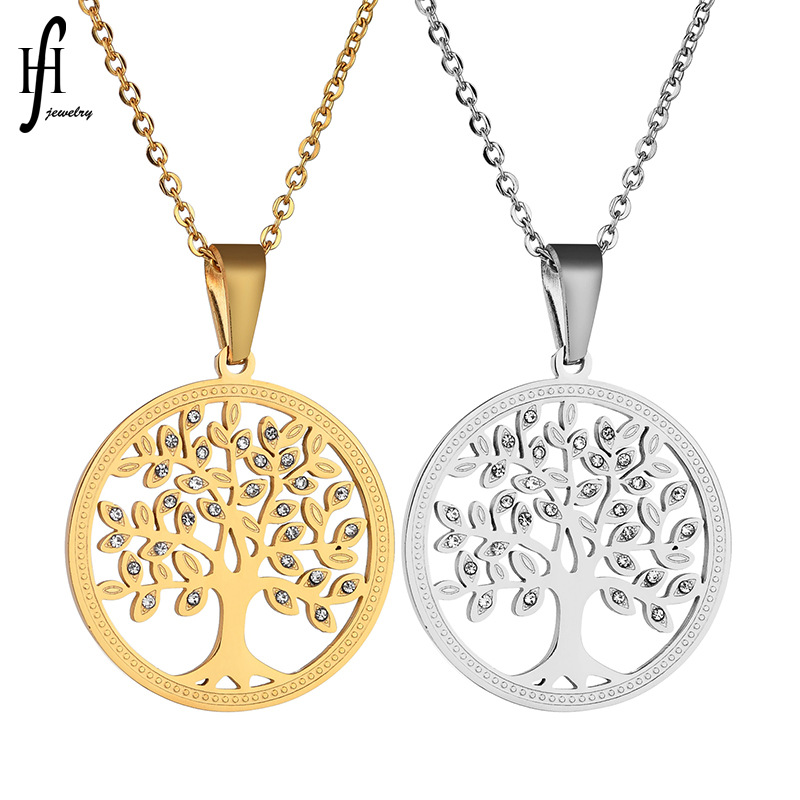 Ebay Cross-Border Supply Stainless Steel Tree of Life Necklace Simple Personalized Micro-Encrusted Zircon Pendant Women's Sweater Chain