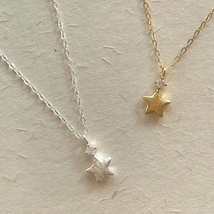 Frosted Lucky Pentagonal Star Necklace Women Fashion Light Luxury Niche Design Ins Style Elegant Collarbone Chain Wholesale