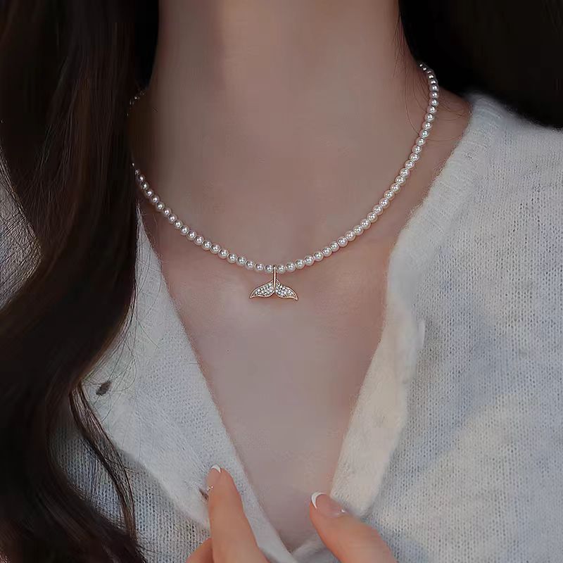 Fishtail Pearl Necklace 2024 New Women's Elegant All-match Necklace Sweater Light Luxury Lockbone Chain Niche Design Accessories