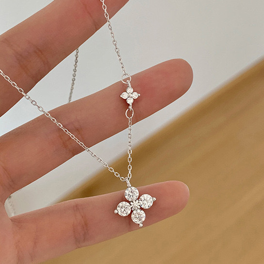 Super Flash Twin Four-Leaf Clover Necklace for Women, Light Luxury Niche Design, Elegant and High-End Clavicle Chain Birthday Gift Wholesale