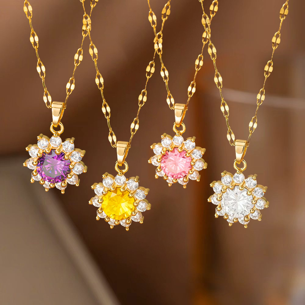 Cross-Border New Colorful Zircon Sunflower Pendant Necklace Women's Fashion Light Luxury Niche Design Temperament Sweater Chain