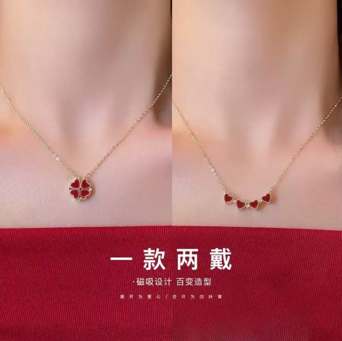 Ariya Multiple Wearing Methods Magnetic Four-Leaf Clover Heart Necklace Accessories 2025 New Necklace Niche Clavicle Chain