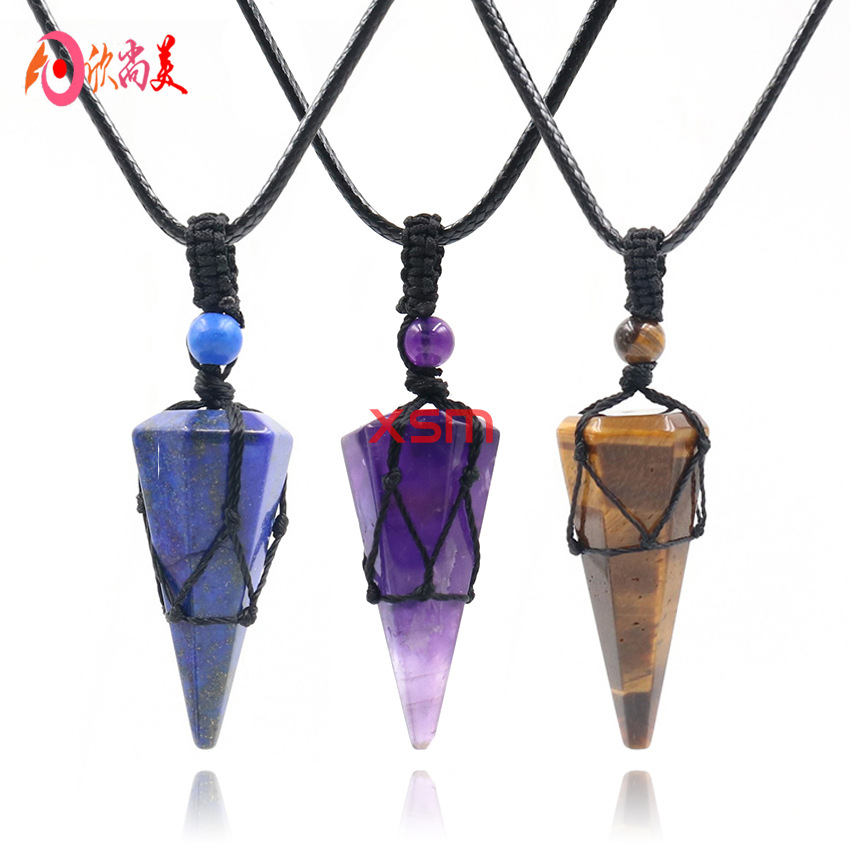 Natural crystal stone hexagonal tapered mesh bag woven pendant sweater chain necklace female cross-border foreign trade new product supply
