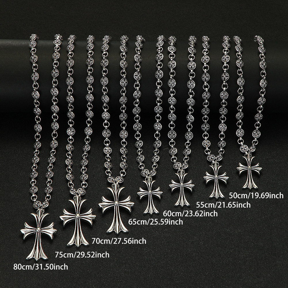 Ch Hip-Hop Nightclub Trendy Brand Cross Necklace Handmade Chain Valentine's Day Gift Retro Imitation Silver Jewelry Punk Hanging Chain