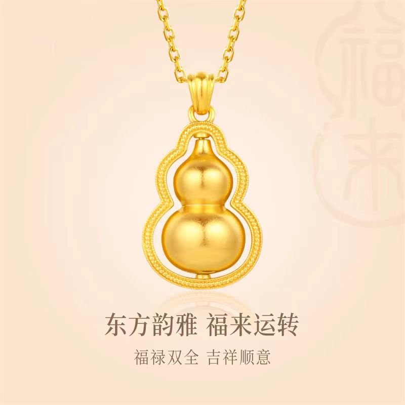 Internet Celebrant New Ancient French Fulu Gourd Pendant Gold Color Fulu Rings Rotating Gourd Pendant Women's Necklace