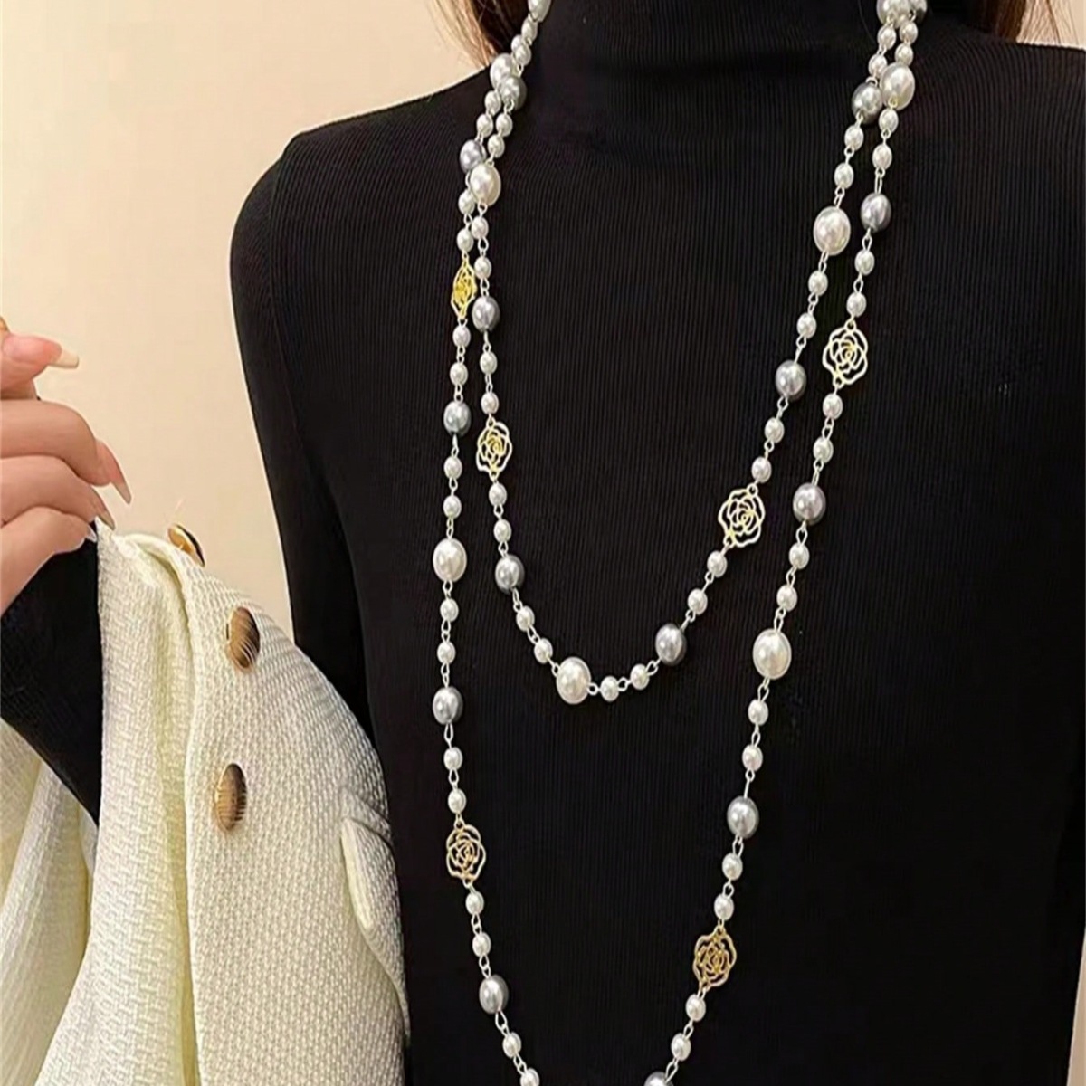 Original Design Simple Square Brand Sweater Chain Double-Layer Necklace Women's Trendy ins Hip-Hop Sweater Hip-Hop Chain Accessories