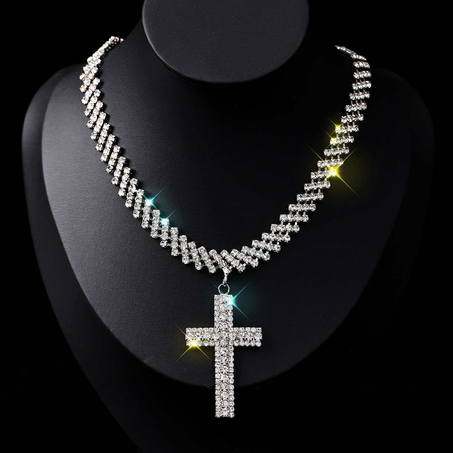 Cross-Border Supply of European and American Popular Jewelry, Full Diamond Personalized Necklace, Fashionable Exaggerated Choker Neck Chain for Women, Short Style