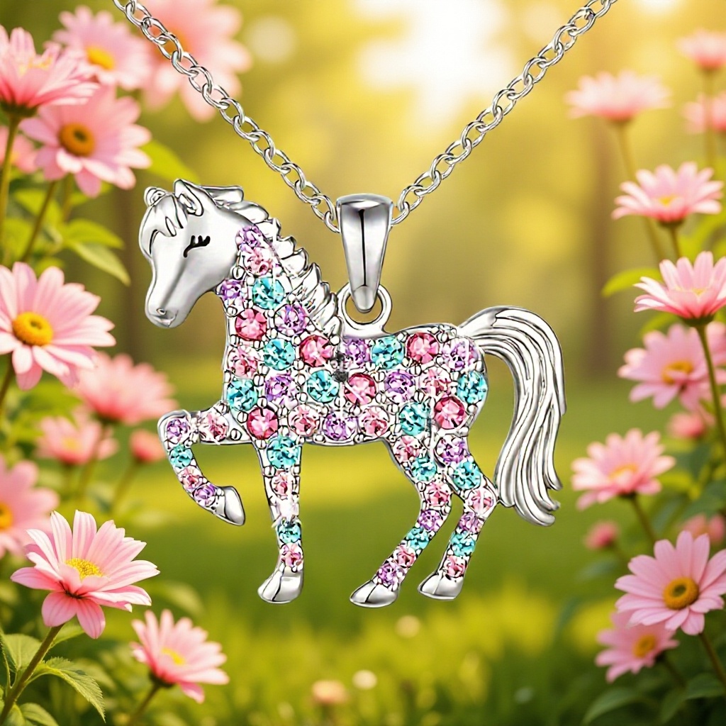temu cross-border new fashion european and american amazon high sense of colorful pony unicorn necklace children's jewelry