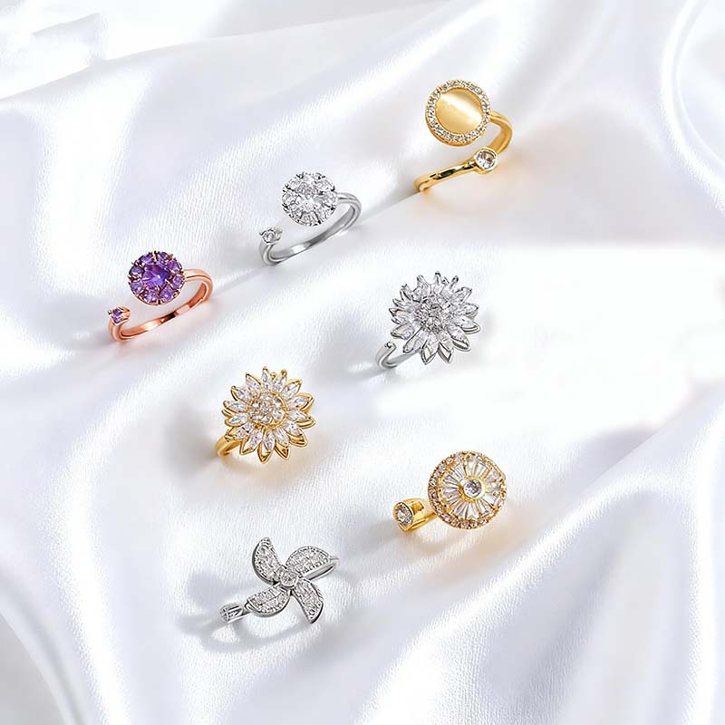 Ring for Women Cross-Border Micro-Embedded Flower Rotating Zircon Temperament Cool Style Full Diamond Love Ring Jewelry Wholesale