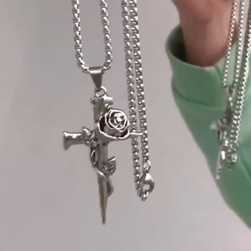 Homemade Original National Trend Hip-Hop Retro Rose Cross Titanium Steel Necklace Men's Personalized Accessories Pendant Trendy Brand Pendant