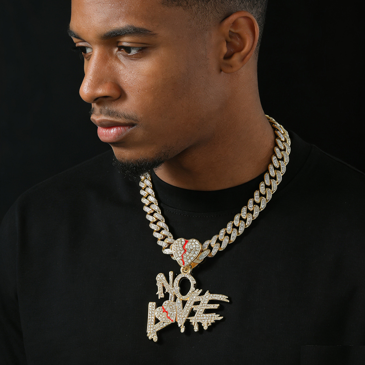 European and American Hip Hop Full Diamond Stitching Letter Love Pendant Men's Clavicle Chain Heartbreak Letter NOLVE Cuban Necklace