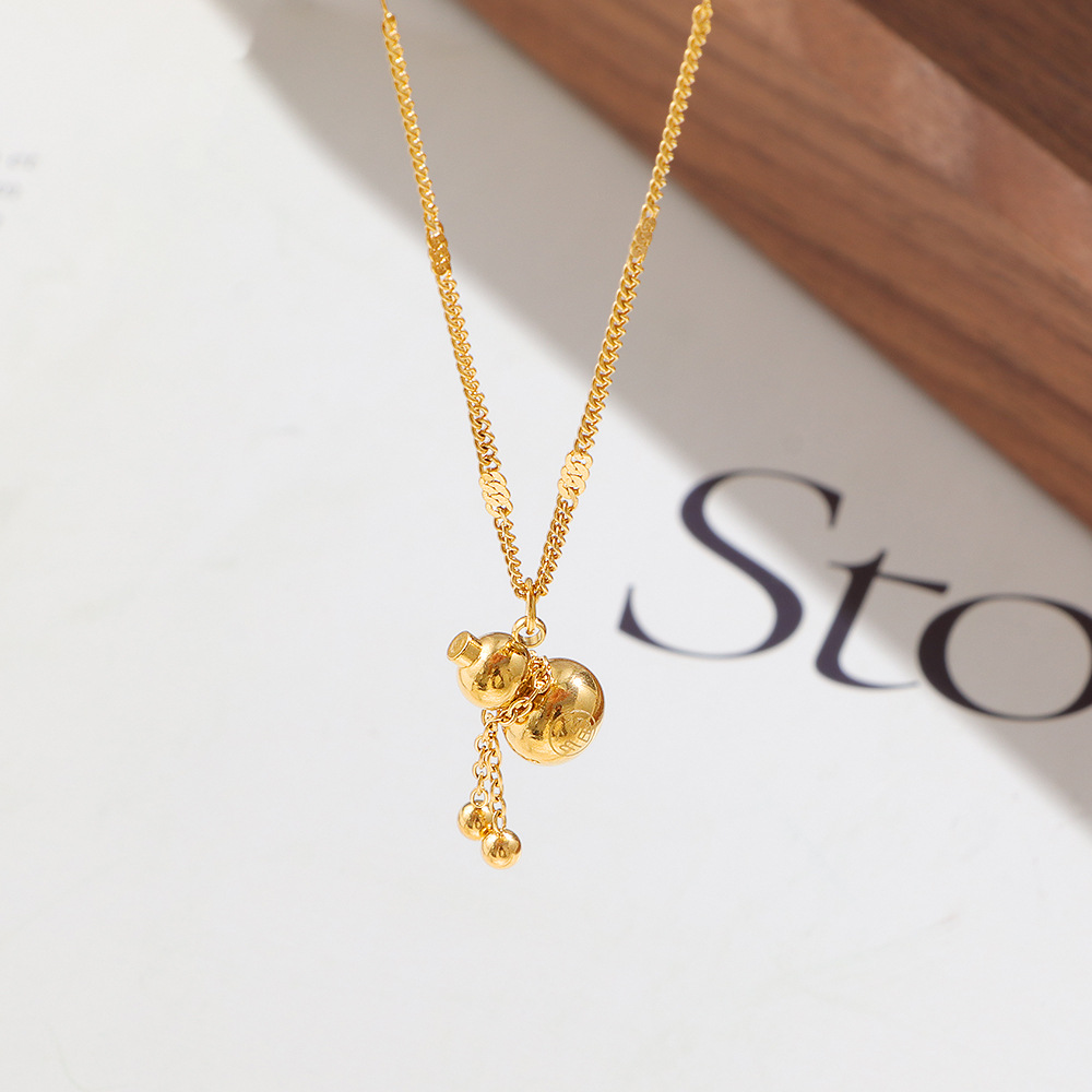 New Chinese Style Gourd Tassel Necklace for Women, Titanium Steel, Non-Fading, Accessible Luxury, High-End Clavicle Chain, 18K Gold Plated Pendant Necklace