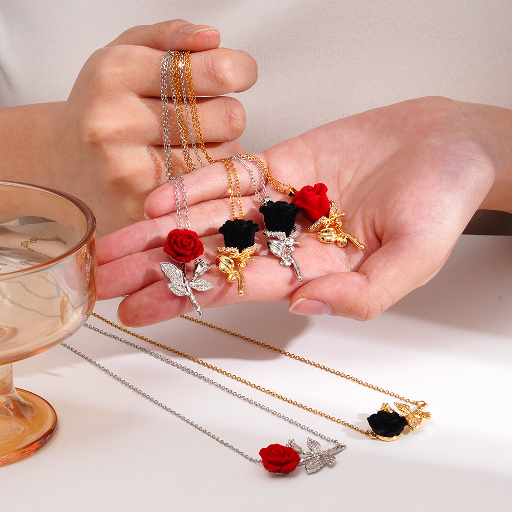 French Necklace Women's Rose Full Diamond Light Luxury Temperament Joker Jewelry Personality High Sense Stainless Steel Necklace Wholesale