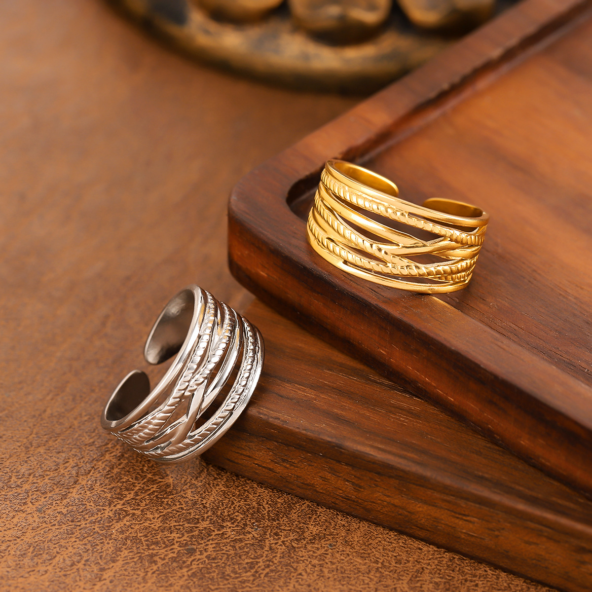 European and American Ins Style Stainless Steel Line Ring Women's Stylish Niche Design Opening Adjustment 18K Gold-Plated Titanium Steel Ring