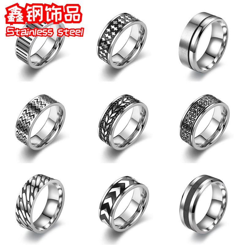 Manufacturer European and American Style Personalized Titanium Steel Ring Fashion Corrosion Oil Design Men's Ring Hand Jewelry Wholesale