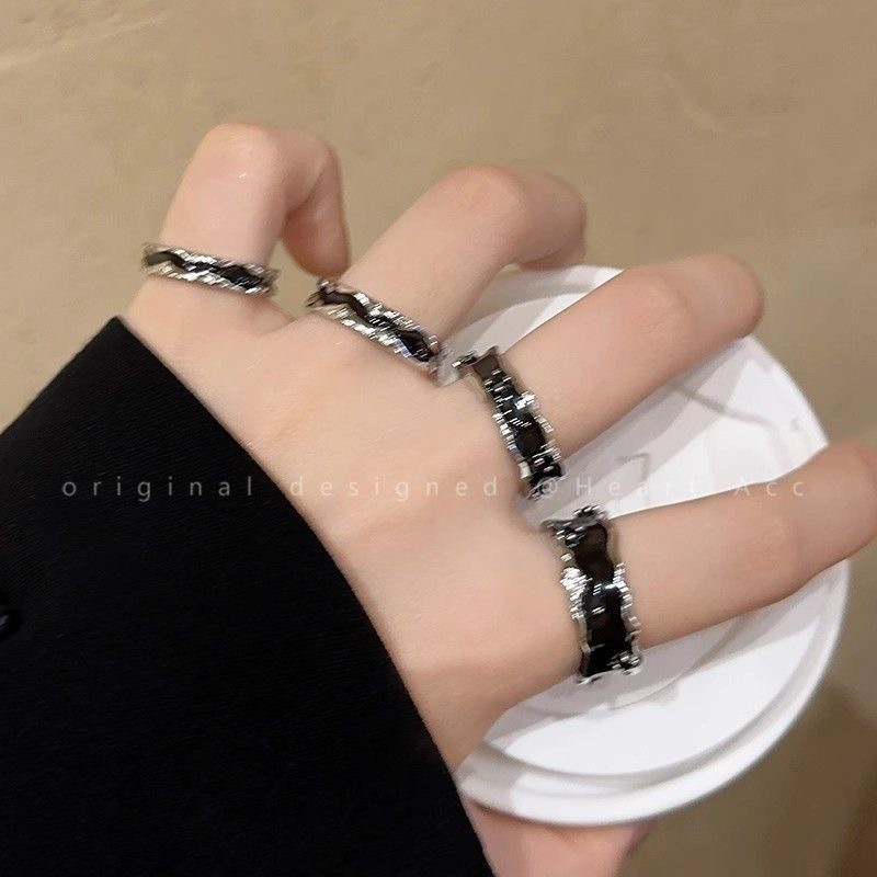 Black Drip Glaze Open Ring for Women Summer Ins Niche High-End Design Index Finger Ring Fashionable Stylish Versatile Ring