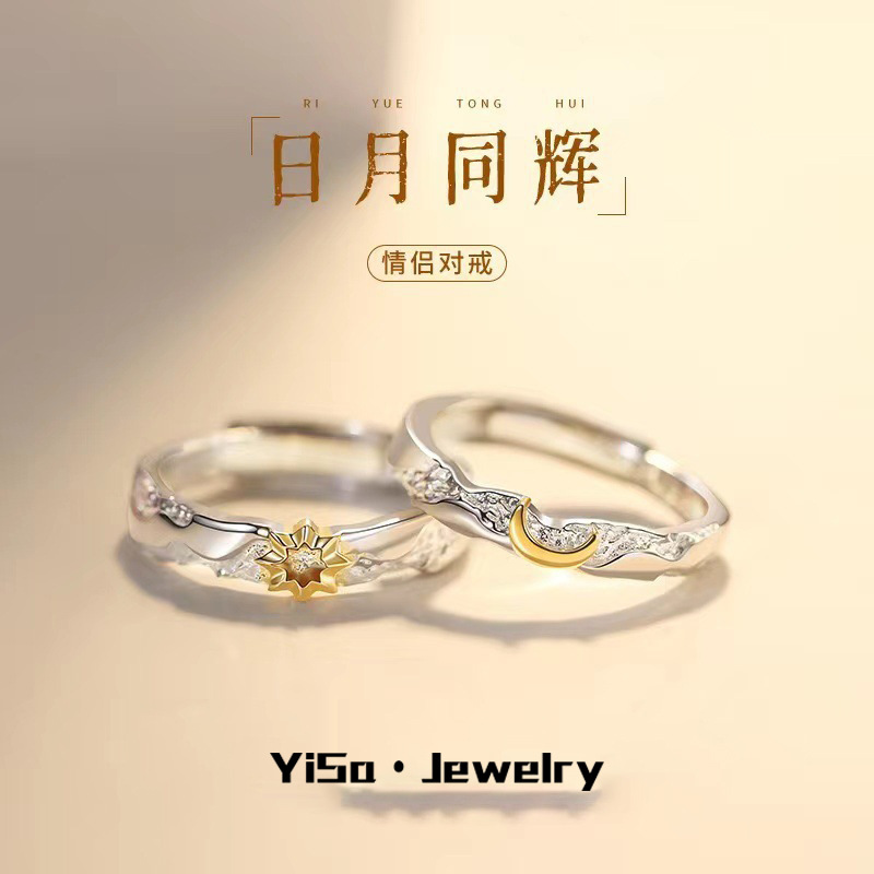 Sun and Moon Tonghui Couple's Ring Power Splitting Craft Sun and Moon Niche Design Advanced Sense Adjustable Ring for Women