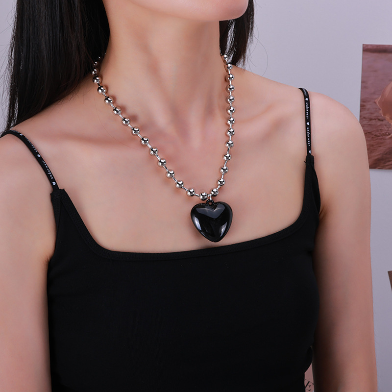 Europe and the United States hot selling high-end sense simple black love necklace hot girl personality clavicle chain necklace pink stone pendant