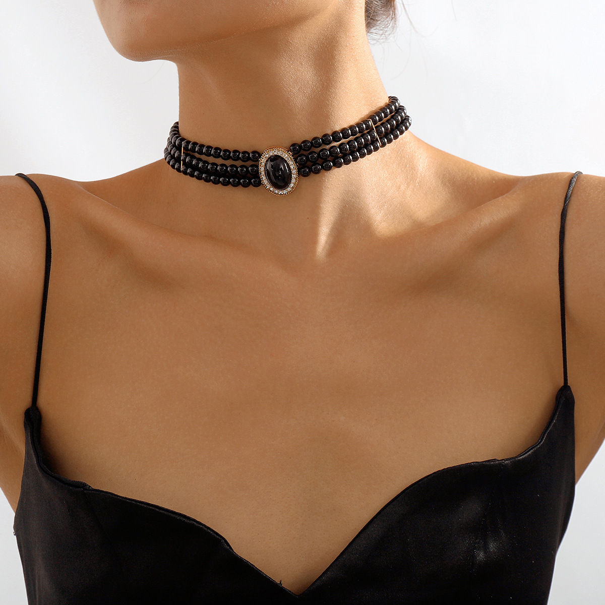European and American Cross-border Black Multi-layer Pearl Necklace Retro Niche Court Elegant Chain Women Choker Clavicle Chain Women