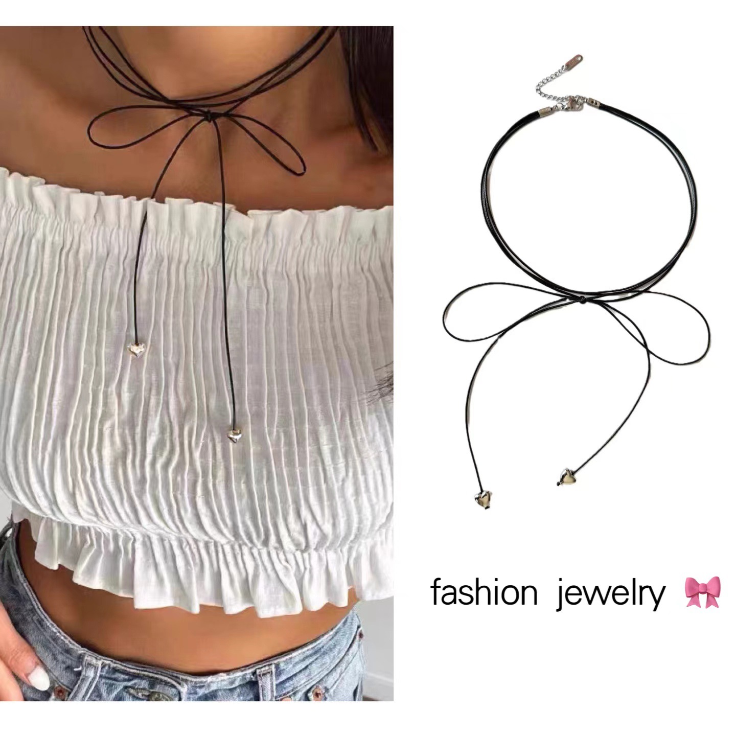 Cross-border Simple Multi-layer Wax Strap Love Bow Collar Choker Hot Girl Sweet Cool Style Clavicle Chain Necklace