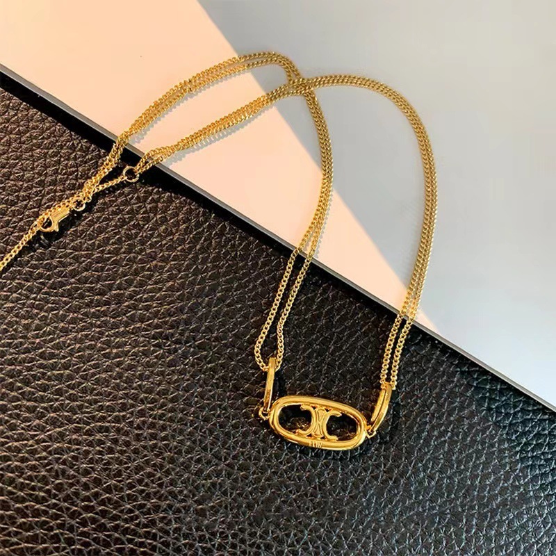 Cross-border European and American Light Luxury Fashion All-match Arc de Triomphe Double-layer Stacked Necklace Women's Titanium Steel High-grade Non-fading Necklace
