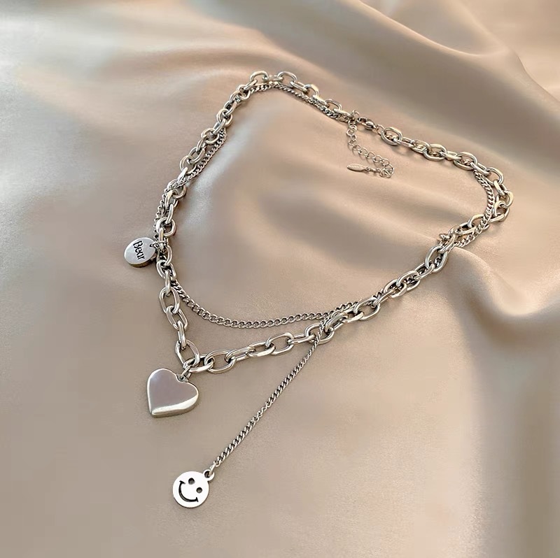 Double-layer love necklace for women 2024 new popular accessories titanium steel non-fading hip hop niche sweater chain sweater chain