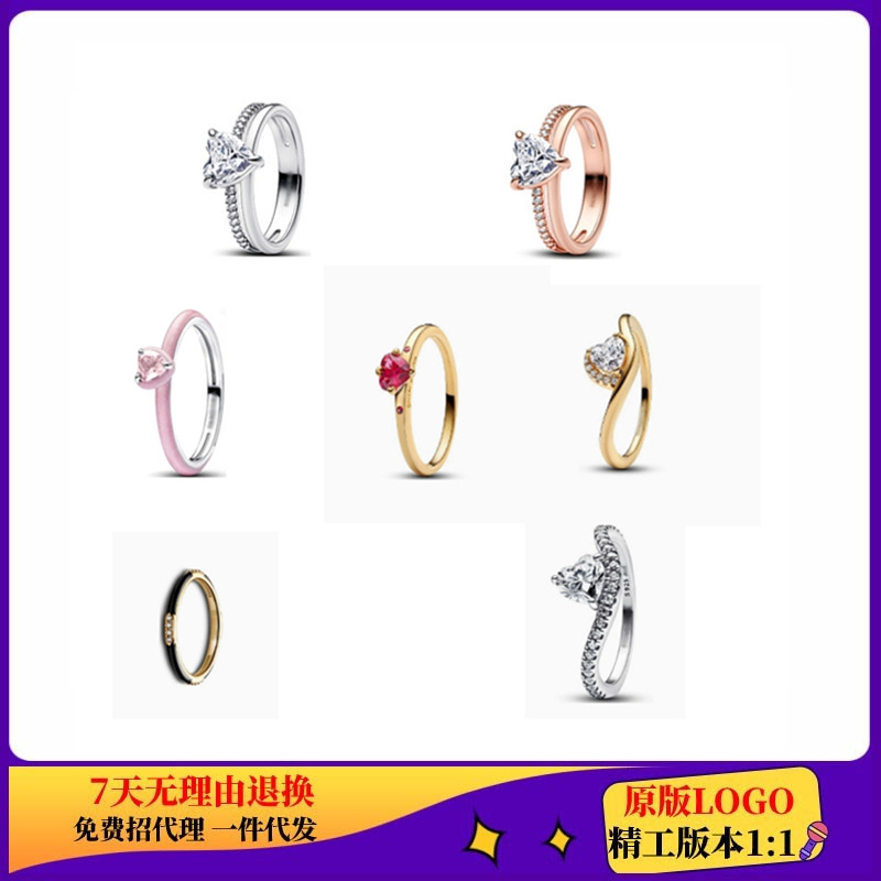 Panjia White Copper Silver-Plated Diamond Gemstone Peach Blossom Heart Butterfly Simple Pair of Rings Fashion Ring Series