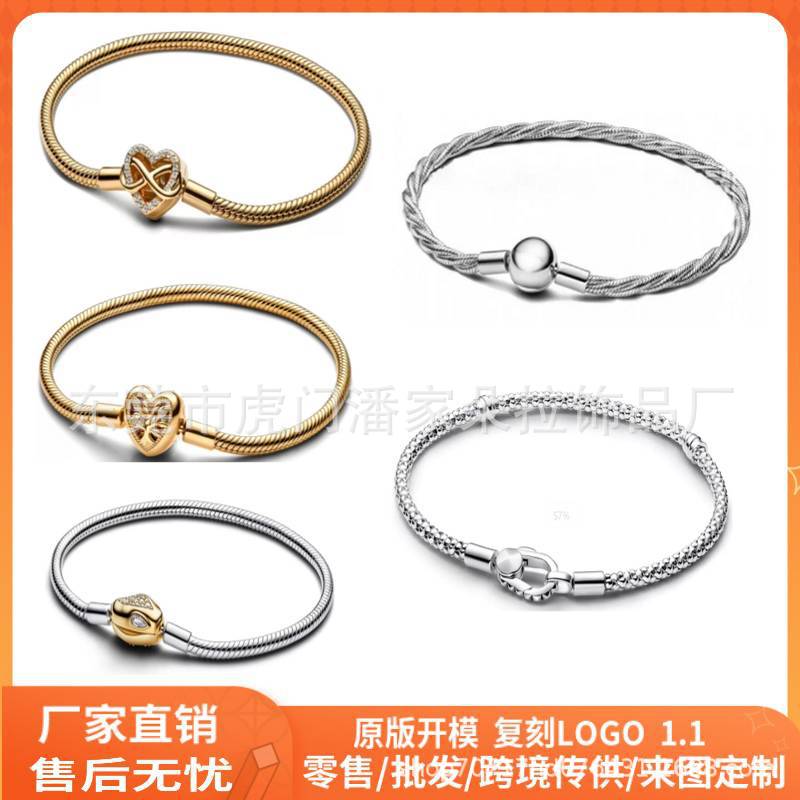 Panjia new white copper silver plated snake bone bracelet heart-shaped love basic chain bracelet can be DIY