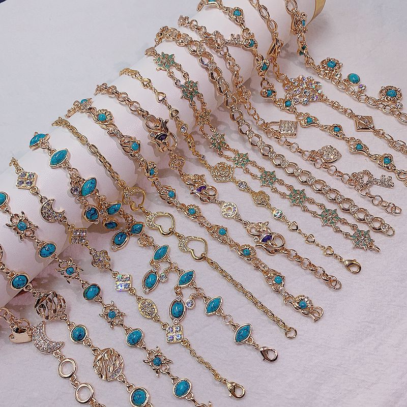 Vintage Simple Turquoise Diamond Bracelet All-match Elegant Gold Plated Color-retaining Good Daily Geometric Bracelet for Women