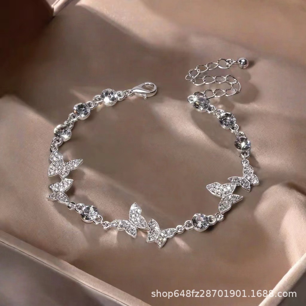 Zircon Butterfly Bracelet Women's Internet Celebrity Korean Style Simple Temperament Personality Pull Adjustable Bracelet Jewelry
