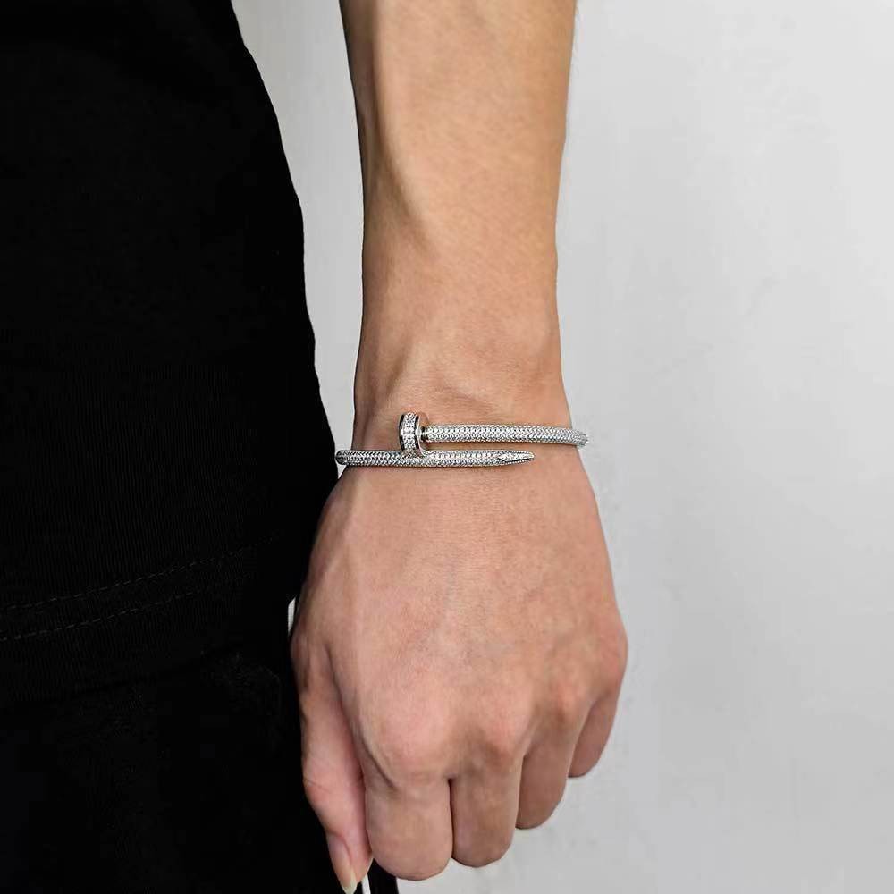 High Version V Gold Classic Full Diamond Nail Head and Tail with Diamond Couple Bracelet Thick 18K Rose Gold Plating Light Luxury Europe and America